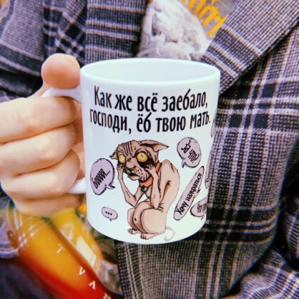 Керамическая кружка вмещает в себя 330 мл любимого напитка.