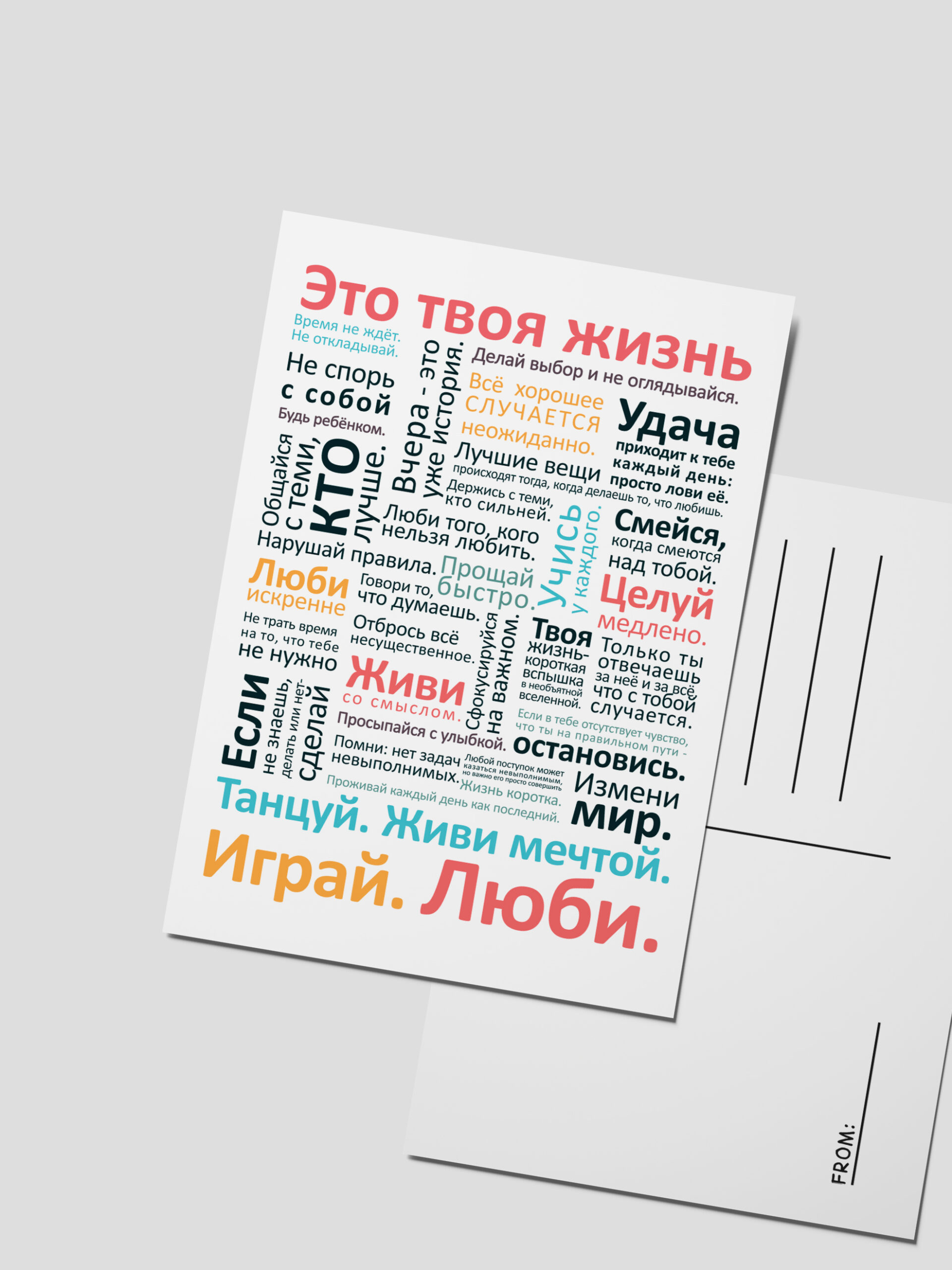 • Открытка А6 (10х15) • Плотный картон • На обороте место под марки и пожелания