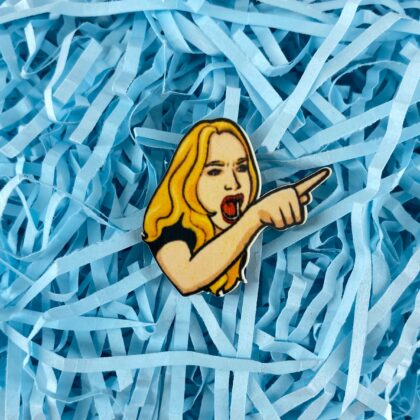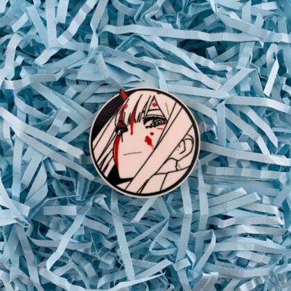 Крепление на металлическую булавку. Стойкое полноцветное изображение дополнительно защищено глянцевым лаком.